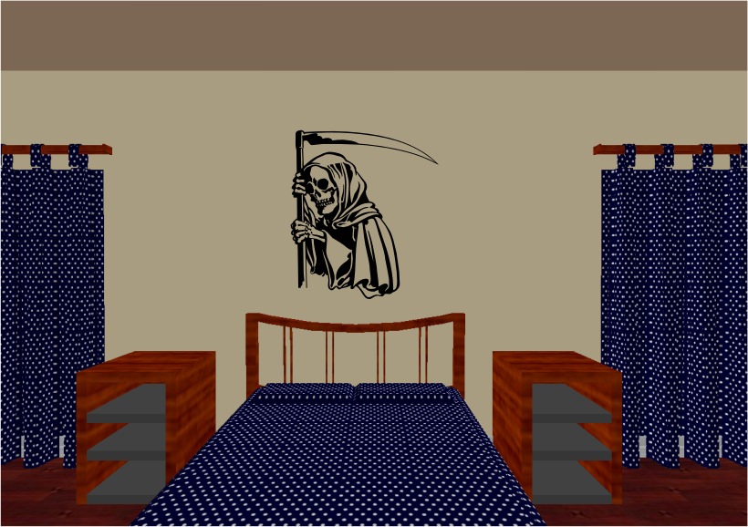 Bring in some sick, Gothic coolness into your bedroom, living room, entertainment room, game room, garage, porch, lounge or bar with this cool Grim Reaper Sticker! This custom wall decal can be altered to your preferred color and size.